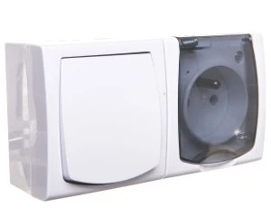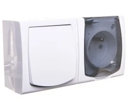 MADERA Łącznik hermetyczny świecznikowy + gniazdo hermetyczne pojedyncze z/u z klapką przezroczystą biały ZH-NŁ2G/00/d