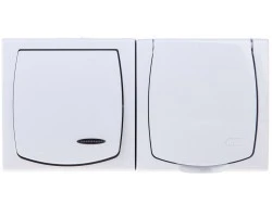 MADERA Łącznik hermetyczny pojedynczy z podświetleniem + gniazdo hermetyczne pojedyncze z/u z klapką biały ZH‑NŁ1SG/00/w