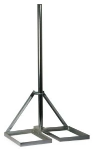 Uchwyt stojaka wykonany jest z przekrępowanej blachy stalowej 3 mm z przyspawaną do niej rurą stalową, ocynkowany i mocowany do podstaw masztu o wymiarach 39x25 cm. Długość masztu 1 m. Kapturek z tworzywa sztucznego zapobiega przedostawaniu się wody do wnętrza.