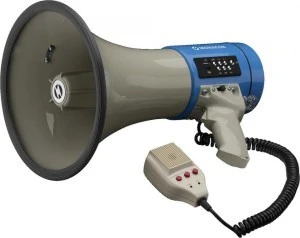Uwaga gwarantowana Z szerokiej gamy naszych megafonów każdy wybierze coś dla siebie. Poniższe zestawienie parametrów pomoże wybrać najbardziej odpowiedni model. Wraz ze wzrostem uzyskiwanego poziomu ciśnienia dźwięku (w dB), zwiększa się zasięg jego słyszalności. Można wybrać między urządzeniami z mikrofonem wbudowanym lub doręcznym. Każdy z megafonów MONACOR zasilany jest ze standardowych baterii, niektóre modele posiadają także złącze dla zewnętrznego zasilania 12V. Kryteriami wyboru mogą być także rozmiar i waga urządzenia. Megafon z wbudowanym odtwarzaczem MP3. · Mikrofon doręczny z kablem spiralnym · Blokowany przycisk aktywujący i regulator głośności oraz przycisk nagrywanie/odtwarzanie na mikrofonie przewodowym · Możliwość nagrywania komunikatu (20 sekund) · Wbudowany odtwarzacz MP3 z portem USB oraz czytnikiem kart micro SD · Niezależna regulacja głośności dla odtwarzacza MP3 i mikrofonu · Syrena (włączana) · Gniazdo zewnętrznego zasilania 12V · W komplecie kabel zasilający do samochodu Wbudowany mikrofon nie Mikrofon doręczny tak Mikrofon bezprzewodowy nie Blokowany przycisk mikrofonu tak Uchwyt pistoletowy tak Pasek na ramię tak Kabel zasilający do samochodu tak Syrena tak Regulator głośności tak Moc wyjściowa MAX 25 W Skuteczność 110 dB Zasilanie 8 x 1.5 V bateria C (nie dołączona), zewn. 12 V/2 A Gniazdo zasilania 12V tak Wymiary Ø 230 mm x 340 mm Waga 1.3 kg Inne cechy MP3, USB, micro SD Wymiary opakowania (S x W x D) 0.25 x 0.36 x 0.25 m Waga brutto 1.8 kg Waga netto 1.42 kg