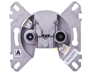 Merten, mechanizm gniazda telewizyjnego r/tv+sat końcowe, to osprzęt serii Merten marki Schneider Electric. Mechaniz mgniazda telewizyjneg o r/tv+sat końcowe charakteryzuje się stopniem ochrony IP20. Do produkcji elementu wykorzystano metal i plastik. Produkt jest montowany podtynkowo. Produkt łączy się z płytką centralną gniazda r/tv+sat.