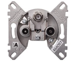 Wkład gniazda końcowego Merten firmy SCHNEIDER ELECTRIC składa się z elementu podstawowego oraz etykiety bez oznaczenia, wykonanej w kolorze białym. Znajduje zastosowanie jako wejście koncentryczne, antenowe, służące do urządzeń TV, SAT oraz radia. Powierzchnia produktu jest nieobrabiana. Gniazdko przeznaczone jest do montażu podtynkowego we wnętrzach budynków za pomocą śrub i pazurków. Charakteryzuje się precyzją oraz elastycznością wykonania. Ze względu na stopień ochrony IP20 produkt nadaje się montażu w suchych miejscach.