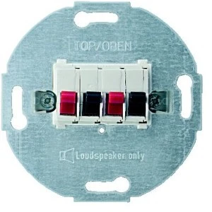 Merten, mechanizm gniazda głośnikowego podwójnego, biały polarny, to osprzęt serii Merten marki Schneider Electric. Mechanizm gniazda głośnikowego podwójnego charakteryzuje się stopniem ochrony IP20. Produkt ma wykończenie powierzchni w kolorze białym polarnym. Do produ kcji elementu wykorzystano metal i plastik. Produkt jest montowany podtynkowo. Produkt łączy się z płytką centralną gniazda głośnikowego.
