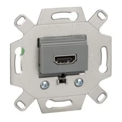 Merten, mechanizm gniazda multimedialnego gniazdo HDMI, to osprzęt serii Merten marki Schneider Electric. Mechanizm gniazda multimedialnego gniazdo HDMI charakteryzuje się stopniem ochrony IP20. Do produkcji elementu wykorzystano metal i plastik. Produkt jest montowany podtykowo przez wkręty i posiada następujące wymiary: szerokość 71 mm, wysokość 71 mm, głębokość 42 mm.