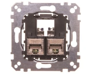 Merten, mechanizm gniazda teleinformatycznego komputerowe 2xRJ45 kat 6a f/stp, to osprzęt serii Merten marki Schneider Electric. Mechanizm gniazda teleinformatycznego komputerowe 2xRJ45 kat 6a f/stp charakteryzuje się stopniem ochrony IP20. Do produkcji elementu wykorzystano metal i plastik. Produkt jest montowany podtynkowo przez wkręty i szczypce.