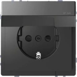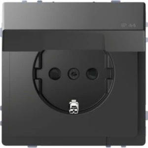 Merten, System Design, gniazdo wtykowe SCHUKO z klapką, przesłoną torów prądowych, IP44, zaciski bezśrubowe, antracyt, to osprzęt serii Merten marki S chneider Electric. Gniazdo wtykowego ma matowe wykończenie powierzchni w kolorze antracytowym i posiada następujące wymiary: długość 71 mm, wysokość 45 mm, szerokość 71 mm. Gniazdo charakteryzuje się stopniem ochrony IP 44, prądem 16A / 250VAC. Produkt jest montowany podtynkowo i posiada zaciski bezśrubowe. Sposób montowania przez wkręty i szczypce.