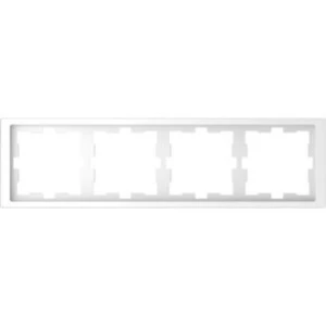 Merten D-Life, ramka czterokrotna, biały lotus, to osprzęt serii Merten marki Schneider Electric. Ramka czterokrotna ma wykończenie powierzchni w kolorze biały lotus i posiada następujące wymiary: szerokość 306 mm, wysokość 90 mm, głębokość 12 mm. Produkt charakteryzuje się stopniem ochrony IP20. Do produkcji elementu wykorzystano ABS. Produkt jest montowany poziomo lub pionowo.