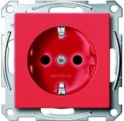 Gniazdo wtyk. SCHUKO obw. specj., przesł. b.śrub., rubinowy, Sys M. rodzina produktów: Merten System M - nazwa serii: M-Arc, M-Elegance, M-Plan, M-Plan glass, M-Smart, M-Star, System M - typ produktu: wypust mocy - gniazdo standardowe: niemiecki. Zalety: Nieograniczone możliwości., System M serii Merten jest międzynarodowym programem, w którego ofercie znajdują się wszystkie niezbędne typy łączników i gniazd.. Szeroki zakres typów wykończenia, kolorów, wariantów serii zapewniających pełną modułowość., Oferując ponad 150 funkcji, System Merten oferuje rozwiązania związane ze sterowaniem oświetleniem, gniazdami i łącznikami, VDI, sygnalizacją, elektronicznym sterowaniem oświetleniem ze ściemniaczami i czujkami ruchu, sterowaniem żaluzjami i roletami, sterowaniem temperaturą oraz produkty dedykowane dla szpitali i hoteli., System M linii Merten zawiera dodatkowo unikalną i znakomitą ofertę dla systemów KNX, z wysokiej jakości przyciskami, wyświetlaczami oraz czujkami ruchu i obecności., W przypadku odnawiania lub renowacji pomieszczeń, System M ma do zaoferowania najnowszą technologię, system sterowania radiowego, w pełni zgodny z estetyką poszczególnych programów Merten osprzętu elektroinstalacyjnego., Do wszystkich rodzajów instalacji.. Zastosowanie: Rozwiązania Systemu M przygotowane są do wszelkich możliwych rodzajów zastosowań, zarówno w budownictwie mieszkaniowym, jak i usługowym, np. W hotelach, biurach, szkołach....