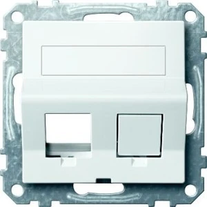 Nachylone wyjście podwójne p.opis. i osłoną p/kurz. do gn. RJ45, B.P, P, Sys M. rodzina produktów: Merten System M - nazwa serii: M-Arc, M-Elegance, M-Plan, M-Plan glass, M-Smart, M-Star, System M - kod koloru: RAL 7024. Zalety: Nieograniczone możliwości., System M serii Merten jest międzynarodowym programem, w którego ofercie znajdują się wszystkie niezbędne typy łączników i gniazd.. Szeroki zakres typów wykończenia, kolorów, wariantów serii zapewniających pełną modułowość., Oferując ponad 150 funkcji, System Merten oferuje rozwiązania związane ze sterowaniem oświetleniem, gniazdami i łącznikami, VDI, sygnalizacją, elektronicznym sterowaniem oświetleniem ze ściemniaczami i czujkami ruchu, sterowaniem żaluzjami i roletami, sterowaniem temperaturą oraz produkty dedykowane dla szpitali i hoteli., System M linii Merten zawiera dodatkowo unikalną i znakomitą ofertę dla systemów KNX, z wysokiej jakości przyciskami, wyświetlaczami oraz czujkami ruchu i obecności., W przypadku odnawiania lub renowacji pomieszczeń, System M ma do zaoferowania najnowszą technologię, system sterowania radiowego, w pełni zgodny z estetyką poszczególnych programów Merten osprzętu elektroinstalacyjnego., Do wszystkich rodzajów instalacji.. Zastosowanie: Rozwiązania Systemu M przygotowane są do wszelkich możliwych rodzajów zastosowań, zarówno w budownictwie mieszkaniowym, jak i usługowym, np. W hotelach, biurach, szkołach....