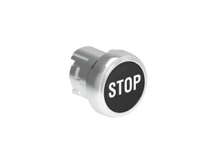 Metalowy przycisk fi22mm kryty samoczynny powrót z symbolem STOP Czarny LPSB1132