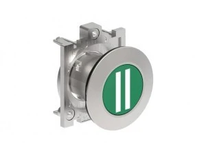 Metalowy przycisk płaski fi30mm kryty samoczynny powrót z symbolem II Zielony LPFB1123
