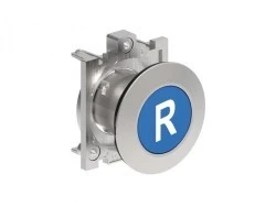 Metalowy przycisk płaski fi30mm kryty samoczynny powrót z symbolem R Niebieski LPFB1176