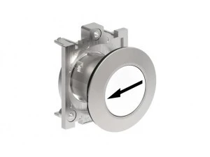 Metalowy przycisk płaski fi30mm kryty samoczynny powrót z symbolem STRZAŁKA W BOK Biały LPFB1148