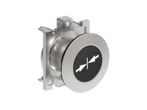 Metalowy przycisk płaski fi30mm kryty samoczynny powrót z symbolem STRZAŁKI DO ŚRODKA Czarny LPFB1512