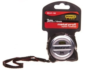 Miara zwijana Modeco Expert MN-81-183 z taśmą 3 m x 16 mm w białym kolorze. Metalowy korpus z dodatkową gumowaną powłoką zapewnia wysoką odporność na wstrząsy. Spełnia normy UE dla II klasy dokładności, a trzy nity mocujące zaczep gwarantują trwałość i bezpieczeństwo podczas pomiarów.