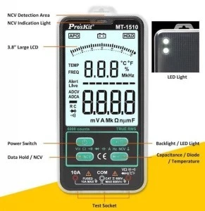 Miernik cyfrowy uniwersalny z dużym wyświetlaczem 3,8cala + NCV MT‑1510