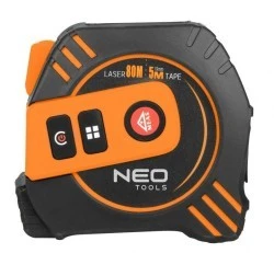 Dalmierz laserowy NEO TOOLS 67-100 to wszechstronne narzędzie 2w1, łączące precyzyjny pomiar laserowy do 40 m i klasyczną miarkę zwijaną 5 m w jednej kompaktowej obudowie.