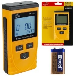 Miernik rezystencji powierzchni marki Benetech, służy do pomiaru wartości oporu poprzez przyłożenie dwóch równoległych elektrod do mierzonej powierzchni, w celu ocenienia czy badany obiekt jest przewodnikiem, materiałem statycznym, czy izolatorem. Miernik może być równocześnie stosowany do pomiaru oporu na podłożu, ma to szczególne zastosowanie w przypadku różnych antystatycznych powierzchni.