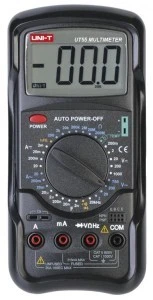 Miernik uniwersalny UT 55 - pomiar napięcia stałego DC: 200mV/2V/20V/200V/1000V - pomiar napięcia zmiennego AC: 2V/20V/200V/750V - pomiar prądu stałego DC: 2mA/20mA/200mA/20A - pomiar prądu zmiennego AC: 20mA/200mA/20A - pomiar rezystancji: 200?/2k?/20k?/200k?/2M?/20M?/200M? - pomiar częstotliwości: 20kHz - pojemność: 20 mikro F - ręczna zmiana zakresów pomiarowych - testowanie diod - akustyczny pomiar ciągłości - pomiar temperatury w stopniach Celsjusza (od -20?C do +1000?C) - funkcja uśpienia - pomiar tranzystorów - zasilanie: bateria 9V (6F22) - wymiary wyświetlacza: 33x65 mm Wymiary: 190x88x34 mm; Masa: 540 g
