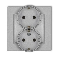 MINI Gniazdo podwójne z uziemieniem SCHUKO 2x(2P+Z) (bez przesłon torów prądowych) srebrny metalik 7MGP‑2s