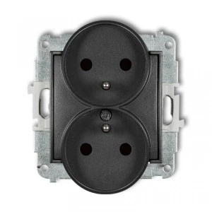 MINI Gniazdo podwójne z/u z przesłonami grafitowe 11MGPR‑2zp