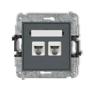 MINI Gniazdo telefoniczne podwójne 2xRJ11 4‑stykowy beznarzędziowe grafitowy mat 28MGT‑2