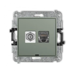 MINI Mechanizm gniazda antenowego F (SAT) + gniazda komp. 1xRJ45, kat. 6 ekranowany, 8‑stykowy, bez opisu szałwiowy 61MGFKBO‑5