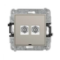 MINI Mechanizm gniazda antenowego podwójnego typu F (SAT) niklowany, bez pola opisowego taupe 60MGFBO‑2