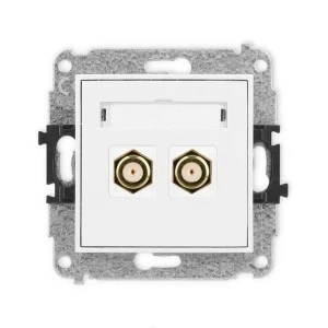MINI Mechanizm gniazda antenowego podwójnego typu F (SAT) pozłacany biały mat 25MGF‑2.1