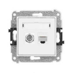 MINI Mechanizm gniazda antenowego poj. typu F (SAT) + gniazda komp. poj. 1xRJ45, kat. 6, 8‑stykowy biały mat 25MGFK‑3