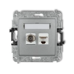 MINI Mechanizm gniazda antenowego poj. typu F (SAT) + gniazda komp. poj. 1xRJ45, kat. 6, 8‑stykowy srebrny metalik 7MGFK‑3