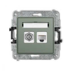 MINI Mechanizm gniazda antenowego poj. typu F (SAT) + gniazda komp. poj. 1xRJ45, kat. 6, 8‑stykowy szałwiowy 61MGFK‑3
