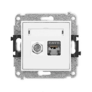 MINI Mechanizm gniazda antenowego poj. typu F (SAT) + gniazda komp. poj. 1xRJ45, kat. 6 ekranowe, 8‑stykowy biały mat 25MGFK‑5
