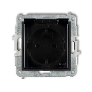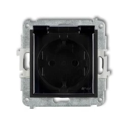 MINI Mechanizm gniazda bryzgoszczelnego z uziemieniem SCHUKO 2P+Z (klapka dymna, przesłony torów prądowych) czarny mat 12MGPB‑1s