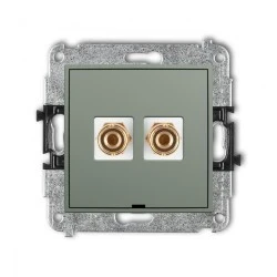 MINI Mechanizm gniazda głośnikowego poj., bez opisu (banan ‑ czerwony i czarny, pozłacany, 4 mm2, do lut.) szałwiowy 61MGGBO‑3