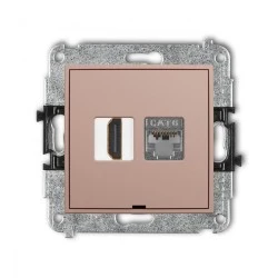 MINI Mechanizm gniazda HDMI 2.0, 4K + gniazda 1xRJ45, kat. 6, ekranowany, 8‑stykowy, bez pola opisowego łososiowy 62MGHKBO‑46