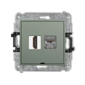 MINI Mechanizm gniazda HDMI 2.0, 4K + gniazda 1xRJ45, kat. 6, ekranowany, 8‑stykowy, bez pola opisowego szałwiowy 61MGHKBO‑46