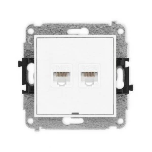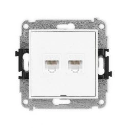 MINI Mechanizm gniazda komputerowego podwójnego 2xRJ45, kat. 5e, 8‑stykowy, bez pola opisowego biały mat 25MGKBO‑2