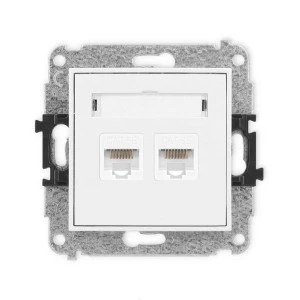 MINI Mechanizm gniazda komputerowego podwójnego 2xRJ45, kat. 5e, 8‑stykowy biały mat 25MGK‑2