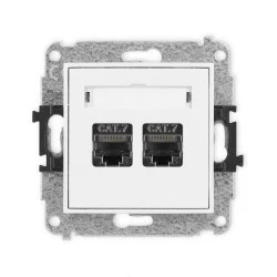 MINI Mechanizm gniazda komputerowego podwójnego 2xRJ45, kat. 7, ekranowane, 8‑stykowy biały mat 25MGK‑10