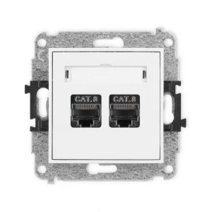 MINI Mechanizm gniazda komputerowego podwójnego 2xRJ45, kat. 8, ekranowane, 8‑stykowy biały mat 25MGK‑12