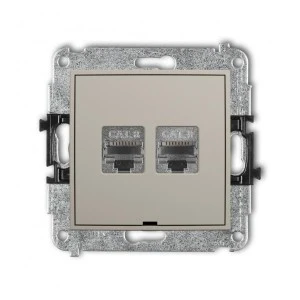 MINI Mechanizm gniazda komputerowego podwójnego 2xRJ45, kat. 8, ekranowany, 8‑stykowy, bez pola opisowego taupe 60MGKBO‑12