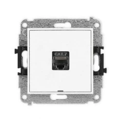 MINI Mechanizm gniazda komputerowego pojedynczego 1xRJ45, kat. 7, ekranowane, 8‑stykowy, bez pola opisowego biały mat 25MGKBO‑9