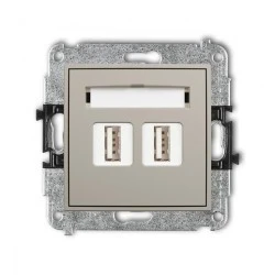 MINI Mechanizm gniazda podwójnego 2xUSB A‑A 2.0 taupe 60MGUSB‑2