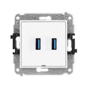 MINI Mechanizm gniazda podwójnego 2xUSB A‑A 3.0, bez pola opisowego biały mat 25MGUSBBO‑6