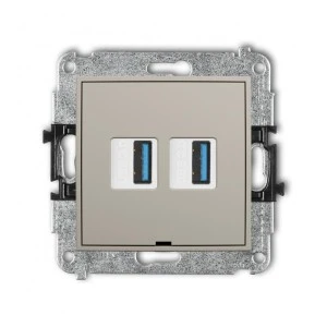 MINI Mechanizm gniazda podwójnego 2xUSB A‑A 3.0, bez pola opisowego taupe 60MGUSBBO‑6