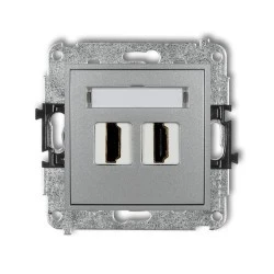 MINI Mechanizm gniazda podwójnego HDMI 2.0 srebrny metalik 7MHDMI‑4