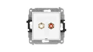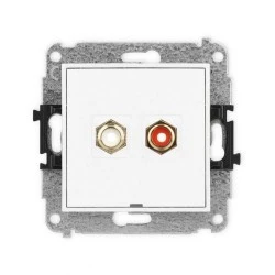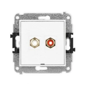 MINI Mechanizm gniazda podwójnego RCA, bez pola opisowego (typu cinch ‑ biały i czerwony, pozłacany) biały mat 25MGRCABO‑2