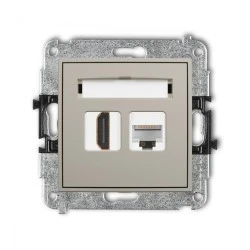 MINI Mechanizm gniazda pojedynczego HDMI 2.0, 4K + gniazda komp. poj. 1xRJ45, kat. 5e, 8‑stykowy taupe 60MGHK