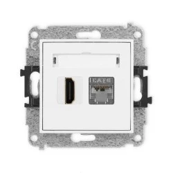 MINI Mechanizm gniazda pojedynczego HDMI 2.0, 4K + gniazda komp. poj. 1xRJ45, kat. 6, ekranowany, 8‑stykowy biały mat 25MGHK‑46
